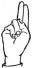 На ћирилици написано ВОЈИН РАДОЈА састоји се из 11 слова [?]. Исписано ћириличном једноручном азбуком за глувонеме: